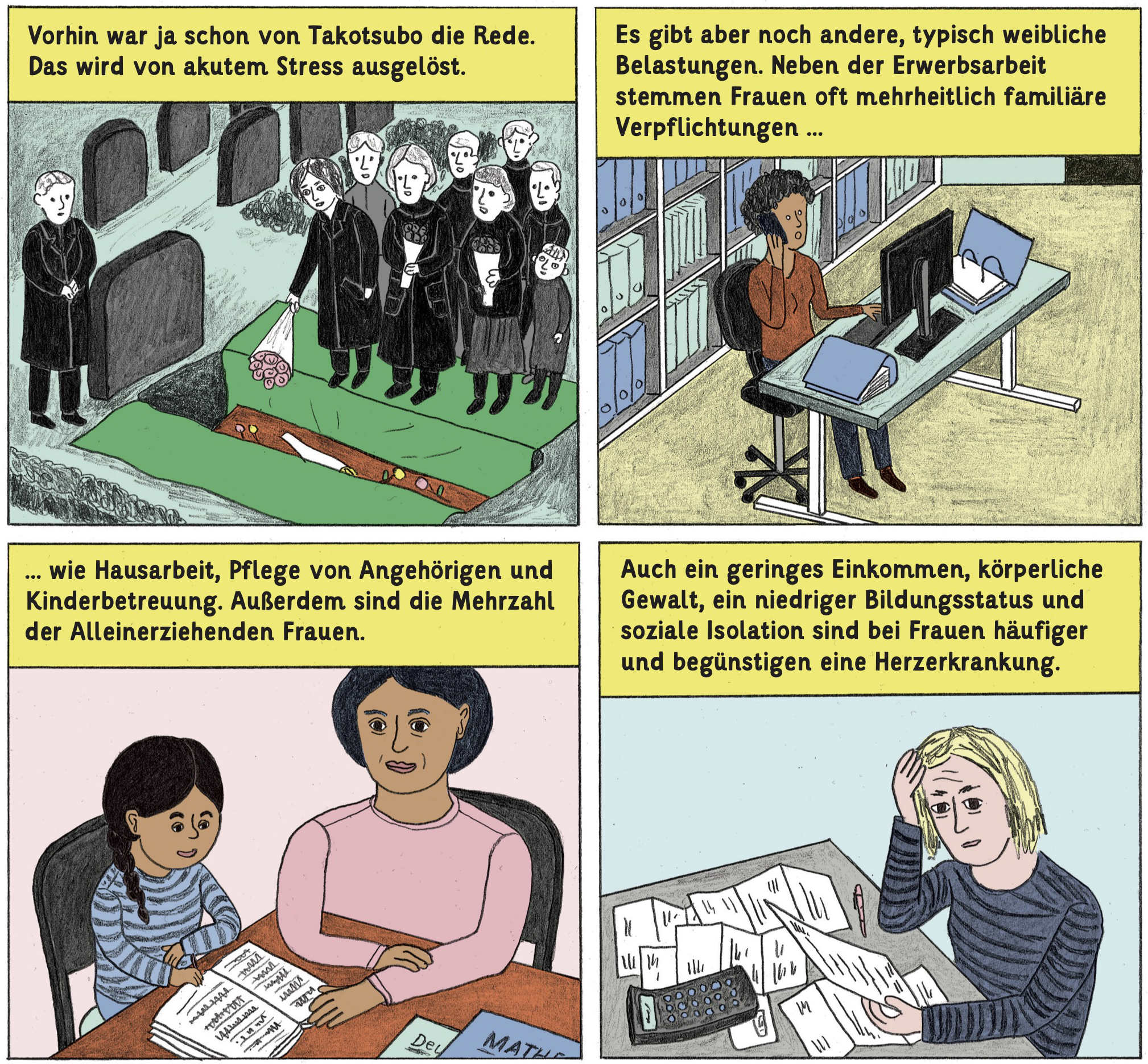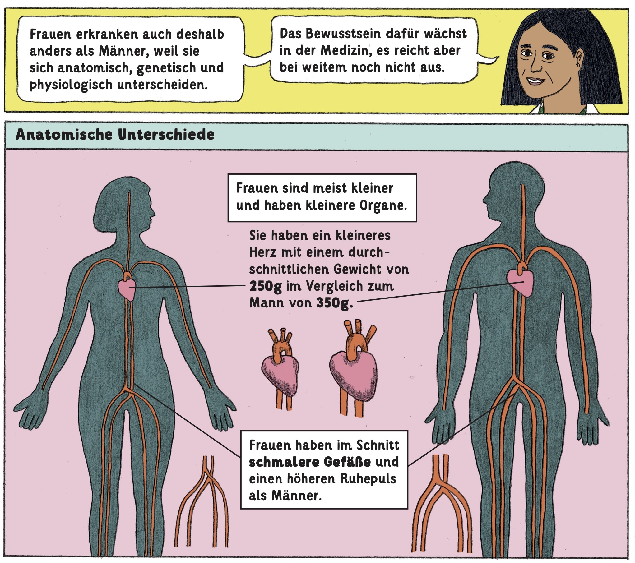zeigt, wie sich Herzprobleme bei Frauen von denen der Männer unterscheiden, ...