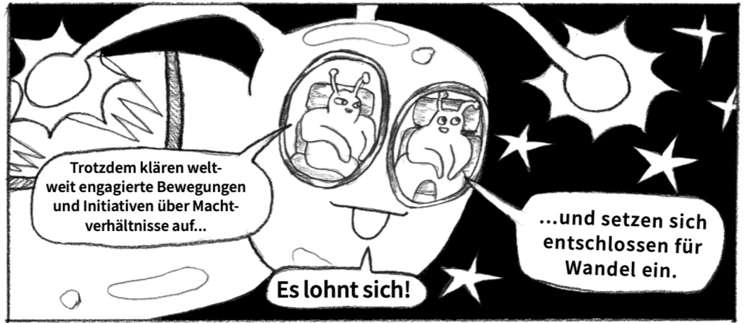 The project kicked off in May 2025 with a two-day workshop at Burg Giebichenstein University of Art and Design in Halle (Saale). Each illustrator teamed up with a climate activist, getting to know their work through online interviews. Those conversations sparked first ideas for the comics.